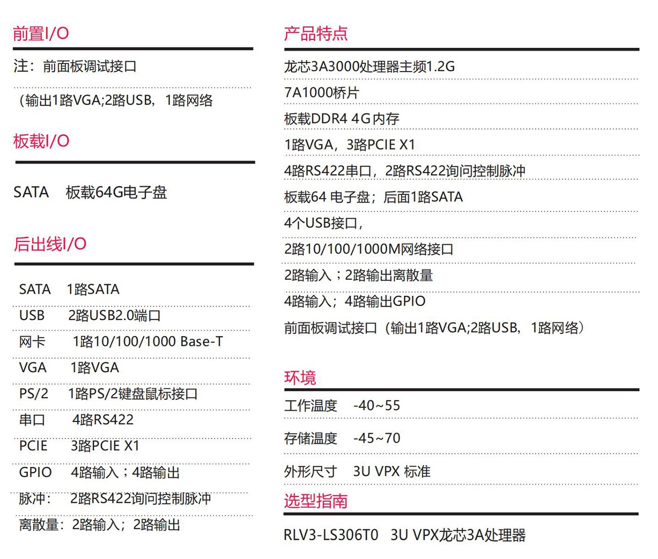 采用龍芯3A處理器按國產100%設計,3U VPX規(guī)格。具備豐富的外圍接口;設計了高效的散熱系統(tǒng),可顯著提高處理器的浮點運算性能,以太網、PCIe、支持高帶寬數(shù)據(jù)傳輸,滿足視頻采集與處理、雷達和聲吶等應用對高速數(shù)據(jù)傳輸?shù)囊蟆?