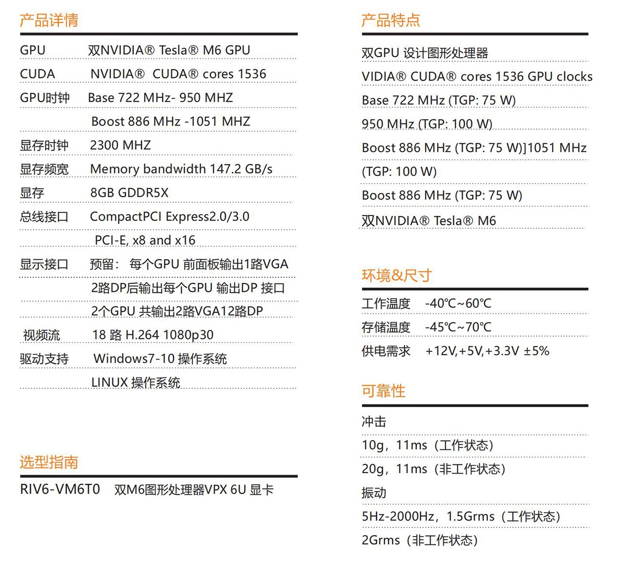 一款高性能雙GPU VPX結(jié)構(gòu)獨(dú)立顯卡,采用二個(gè)NVIDIA? Tesla?M6 圖 形 加 速 器 芯 片 設(shè) 計(jì) , NVIDIA? Tesla? M6 GPU Memory clock 2300 MHz為256BiT8GB GDDR5顯存 ;具有出色多顯示輸出接口、NVIDIA? Tesla? M6 GPU 加 速器針對(duì)刀片式服務(wù)器進(jìn)行了優(yōu)化,能為數(shù)據(jù)中心的虛擬工作站、桌 面和應(yīng)用程序提供高性能圖形。該加速器與 NVIDIA GRID? 軟件 無(wú)縫地配合工作 ,可使企業(yè)虛擬化包括專業(yè)圖形應(yīng)用程序在內(nèi)的眾多 應(yīng)用程序,并將這些應(yīng)用程序傳輸?shù)皆O(shè)備中,該產(chǎn)品有良好計(jì)算和圖 形性