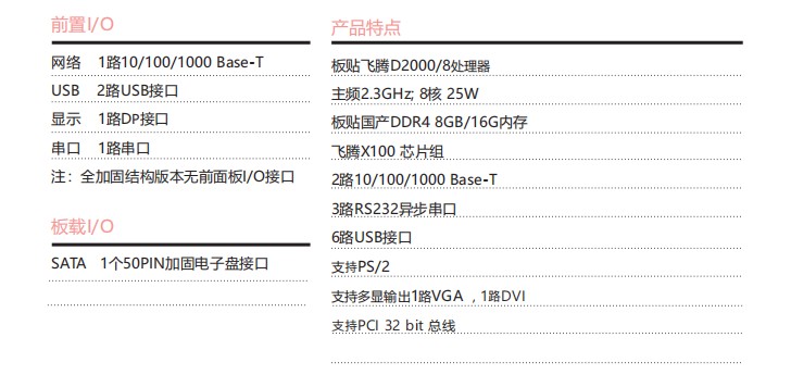 板貼飛騰D2000/8處理器,CompactPCI 3U架構(gòu),具備豐富的外圍接口;設(shè)計(jì)了高效的散熱系統(tǒng),可顯著提高處理器的浮點(diǎn)運(yùn)算性能,以太網(wǎng)、PCIe TO PCI擴(kuò)展總線、滿足視頻采集與處理等應(yīng)用對(duì)高速數(shù)據(jù)傳輸?shù)囊?。專為惡劣環(huán)境使用而設(shè)計(jì),滿足無人機(jī)、裝甲車、水面艦艇等應(yīng)用需求。